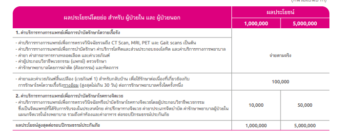 - คุ้มครองค่ารักษาพยาบาล IPD และ OPD สูงสุดถึง 10 ล้านบาท ต่อปีกรมธรรม์