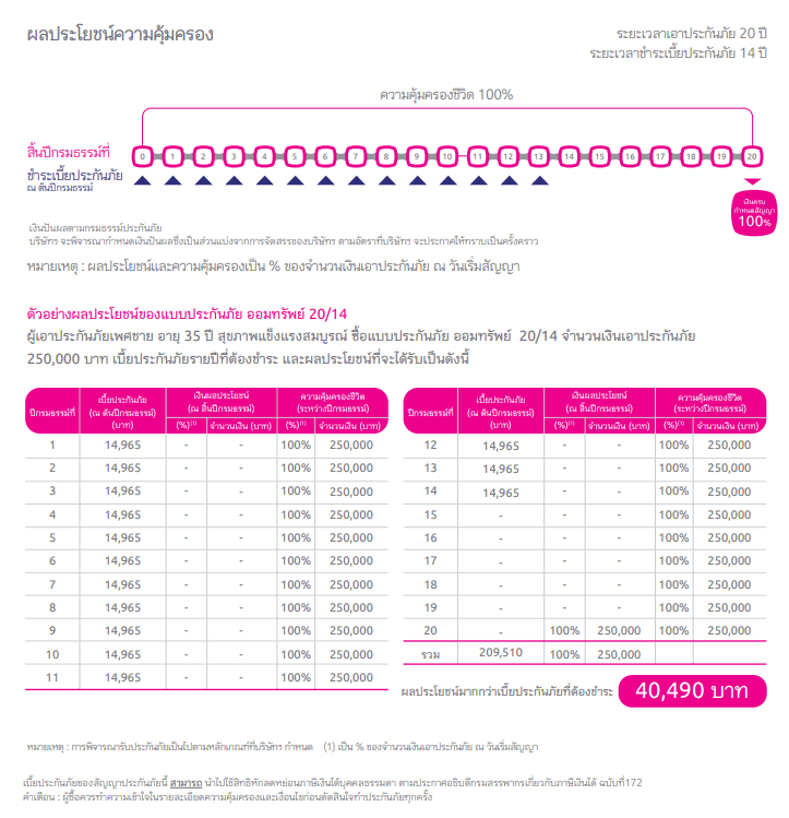 - ระยะเวลาชำระเบี้ยประกันภัย 14 ปี